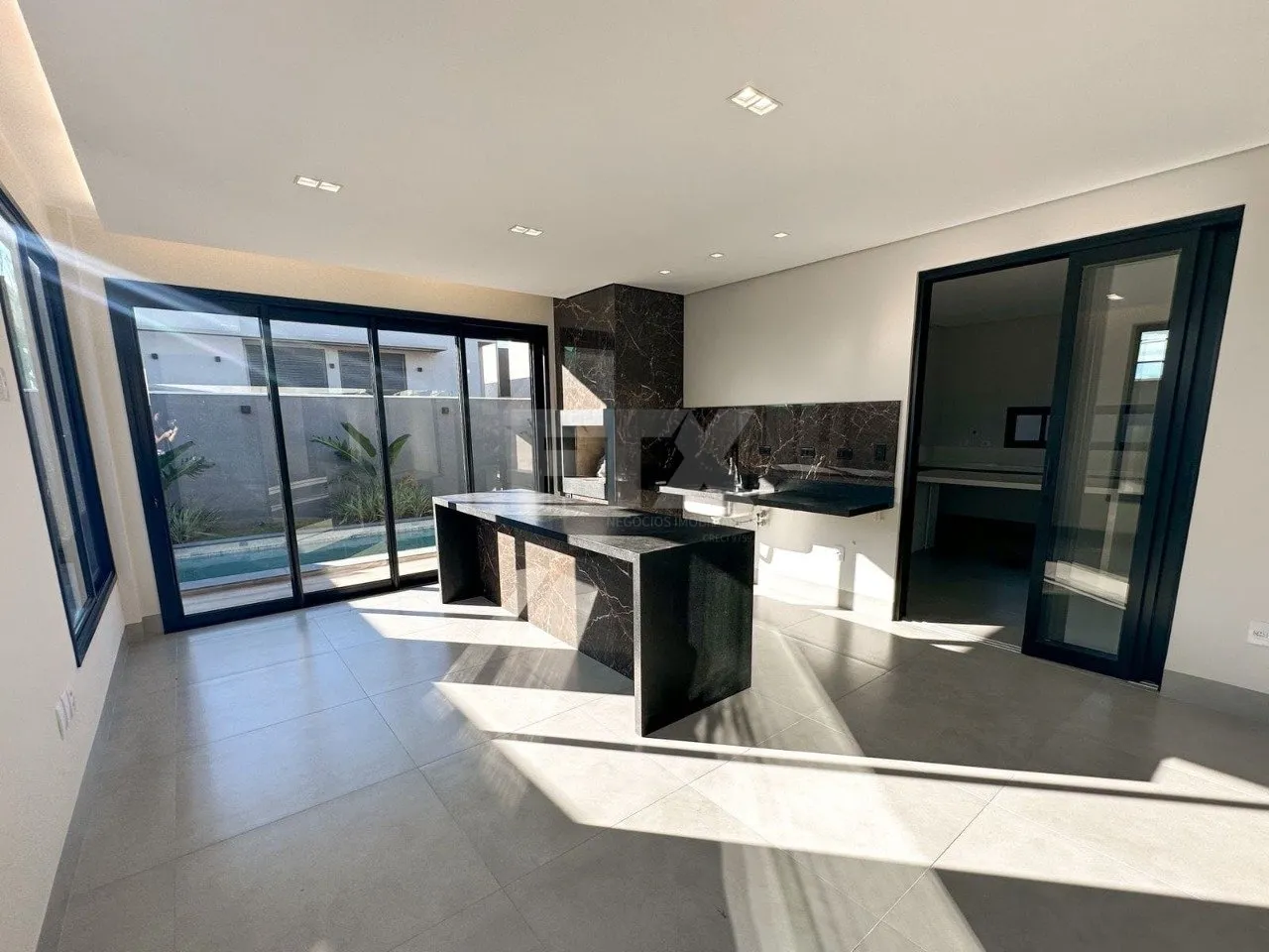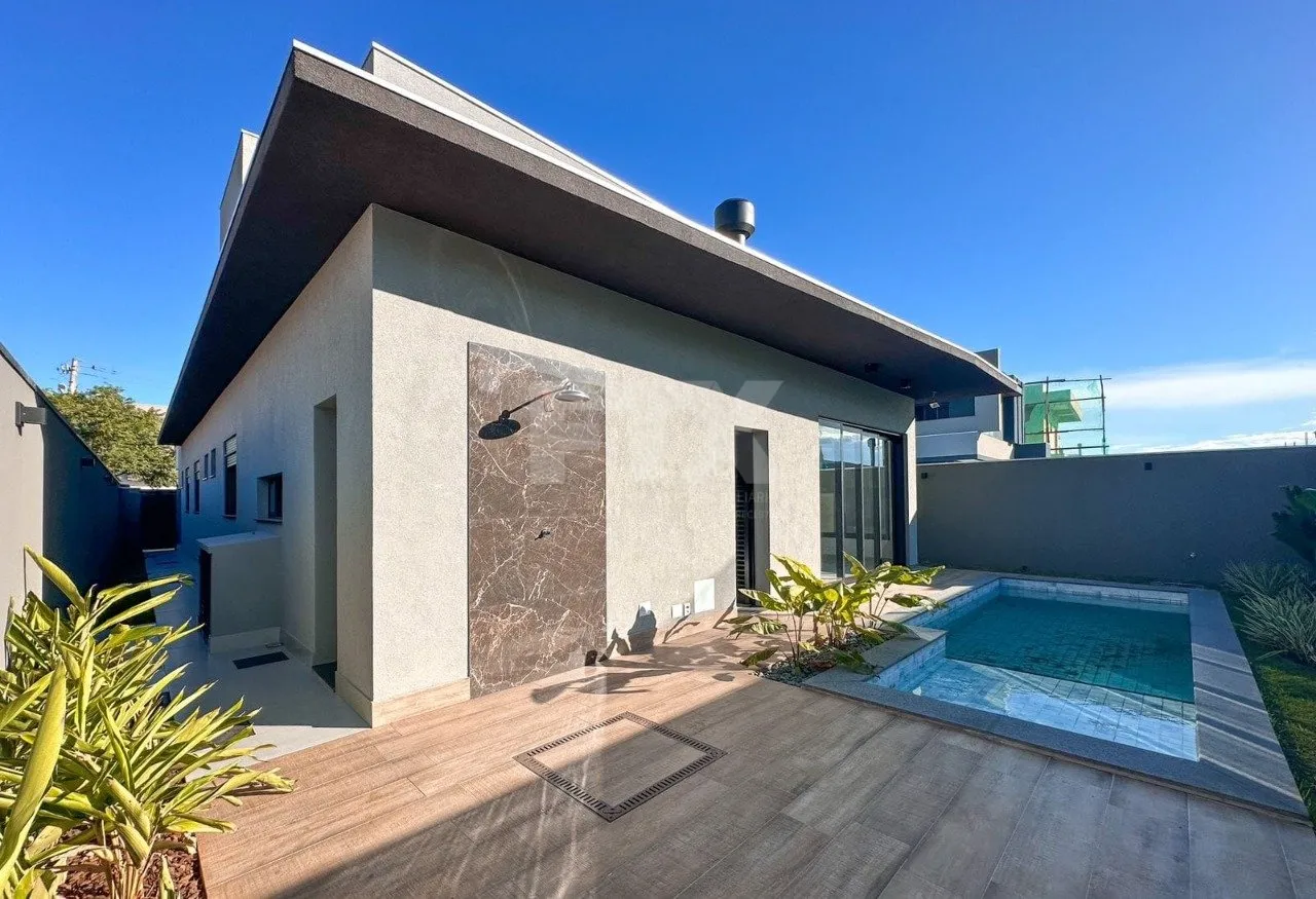 Um imóvel com projeto moderno e único, planejados em todos os ambientes, com localização privilegiada. Com hall de entrada, lavabo, escritório, ampla sala integrada para 2 ambientes, cozinha separada, 3 suítes com persianas automatizadas, área de serviço. Espaço gourmet com bancadas de alto requinte. Piscina aquecida com iluminação, hidromassagem, banheiro externo e paisagismo completo.