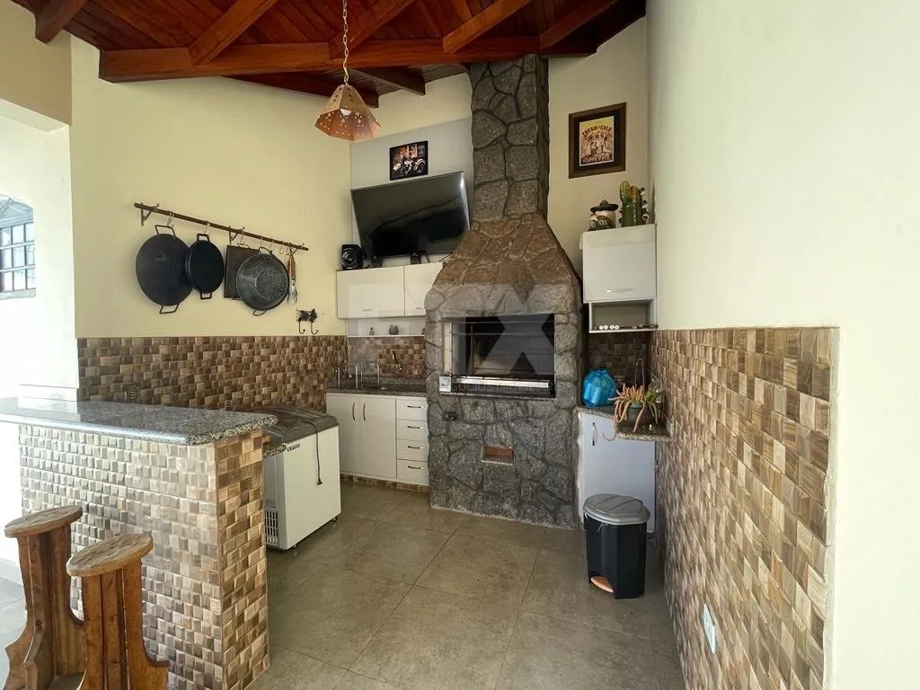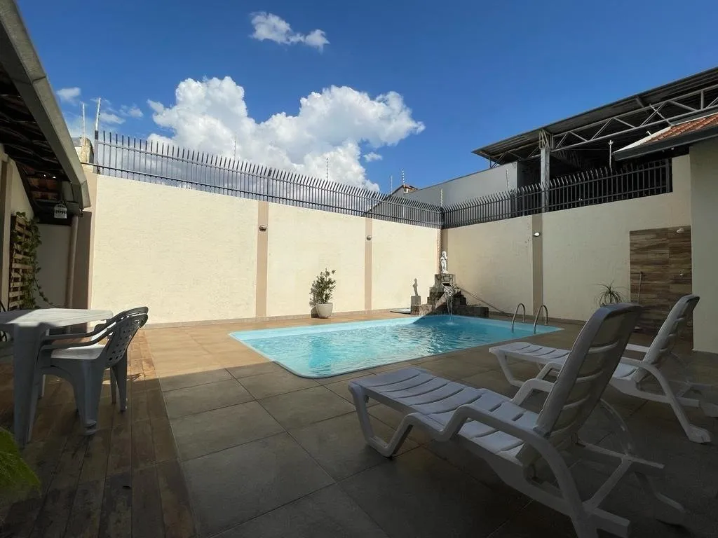 Esta casa é super aconchegante e possui comodos espaçosos. Logo na entrada , temos uma sala enorme que fica anexada a casa, mas nao adentra na casa . Construida para quem tem escritorio ou consultorio com banheiro. Entrando na casa temos 01 sala para escritorio , sala tv, copa , 02 quartos com a/ e , 01 suite com a/e, WC social, copa, cozinha e uma varanda super espaçosa fechada com blindex, seguindo temos area de serviço e mais 01 quarto . No espaço do quintal , temos 01 bonita piscina e enorme com uma cascata , churrasqueira enome em pedras , espaço gourmet, varanda e 01 banheiro externo. Na parte da segurança : CAMERAS e cerca eletrica . A casa possui energia fotovoltaica. 04 garagens e 02 acessos para a garagem. Quartos e cozinha com planejados.