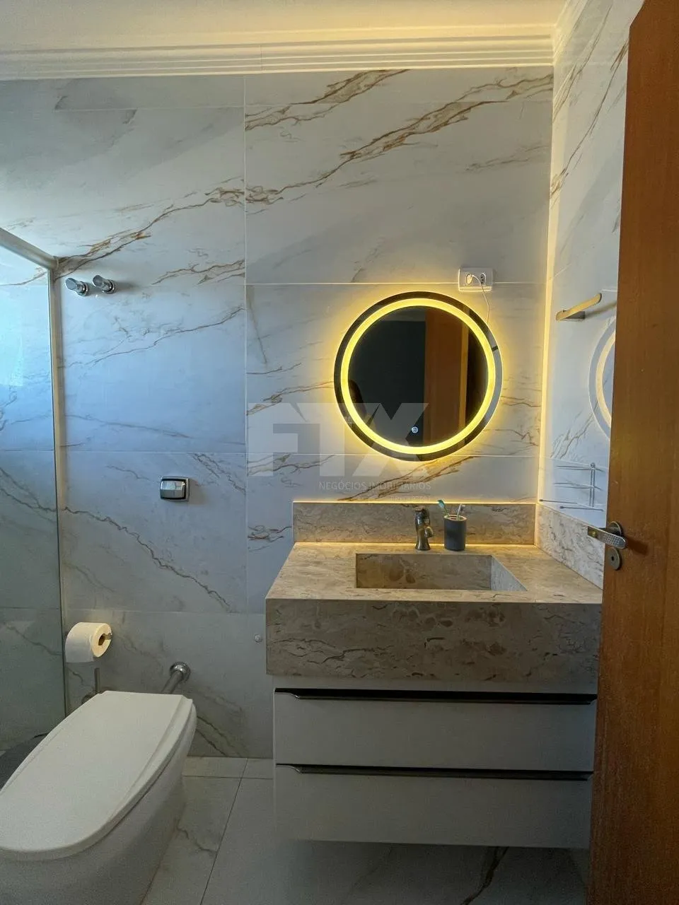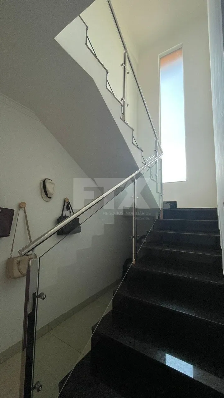 Sobrado familiar com 3 suítes no andar superior, sendo 02 delas com sacada e vista privilegiada! Sala de TV, escada moderna com detalhe imponente em vidro na alvenaria o que facilita a entrada de luz natural.