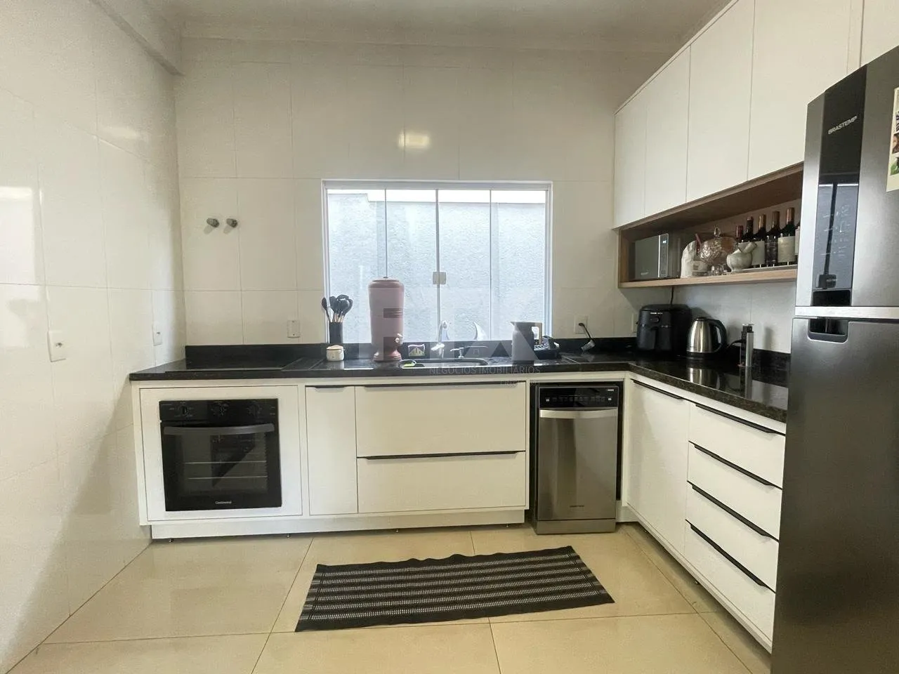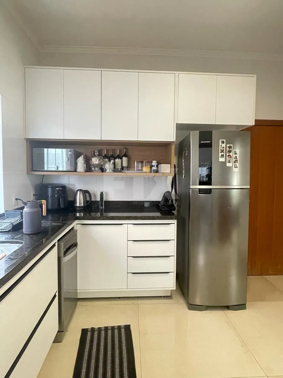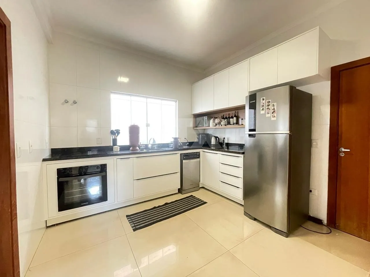 No térreo, garagem coberta para 2 carros, sala de estar, lavabo, cozinha, despensa, banheiro de serviço e área gourmet com churrasqueira. Acabamentos de alta qualidade.