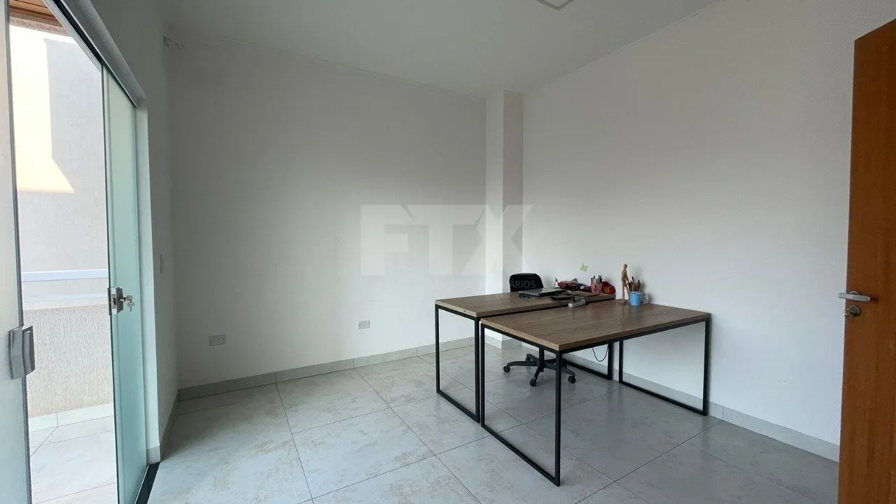 No térreo, garagem coberta para 2 carros, sala de estar, lavabo, cozinha, despensa, banheiro de serviço e área gourmet com churrasqueira. Acabamentos de alta qualidade.