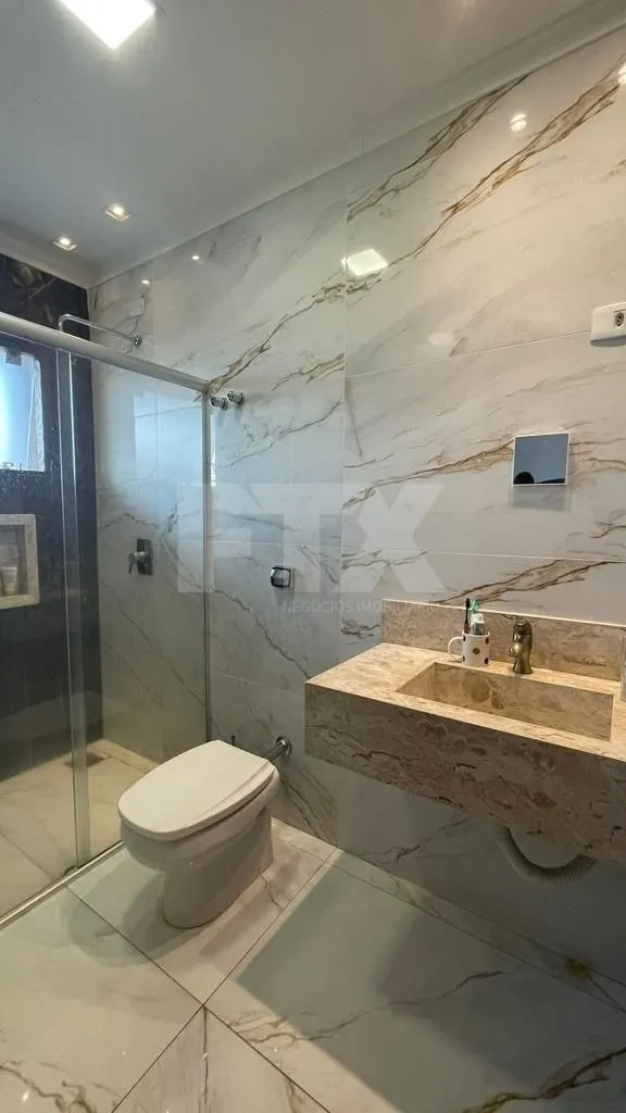 Sobrado familiar com 3 suítes no andar superior, sendo 02 delas com sacada e vista privilegiada! Sala de TV, escada moderna com detalhe imponente em vidro na alvenaria o que facilita a entrada de luz natural.