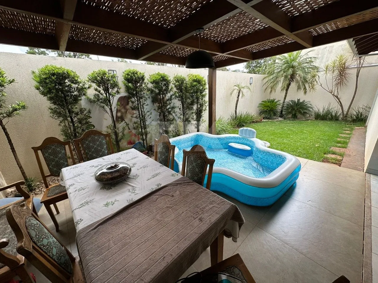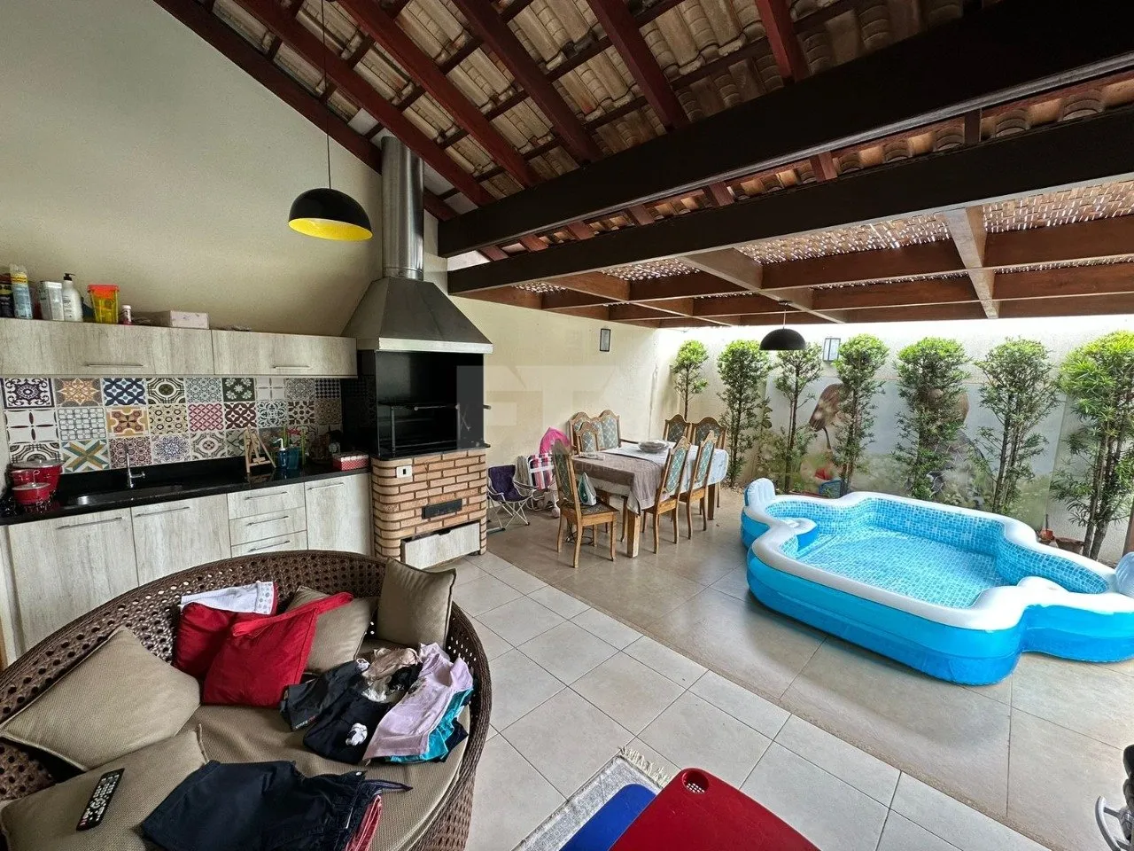 – Area gourmet com jardim gramado