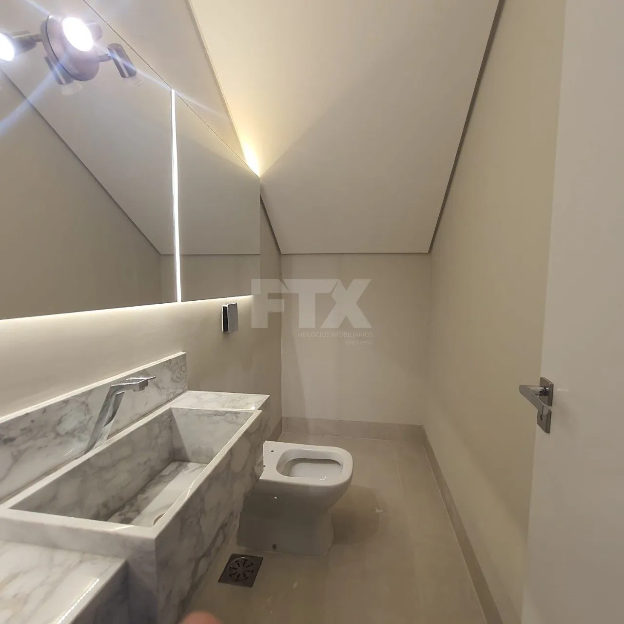 Embutidos Bella House, Boiler alta pressão, escadas e lavabos em mármore Carrara, Revestimento externo Pedra Atacama.