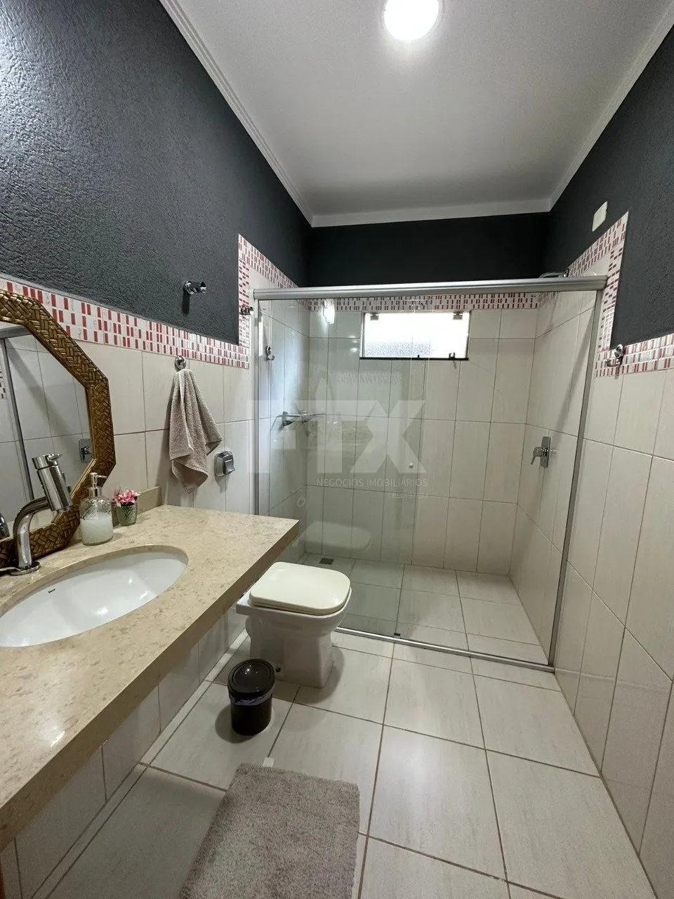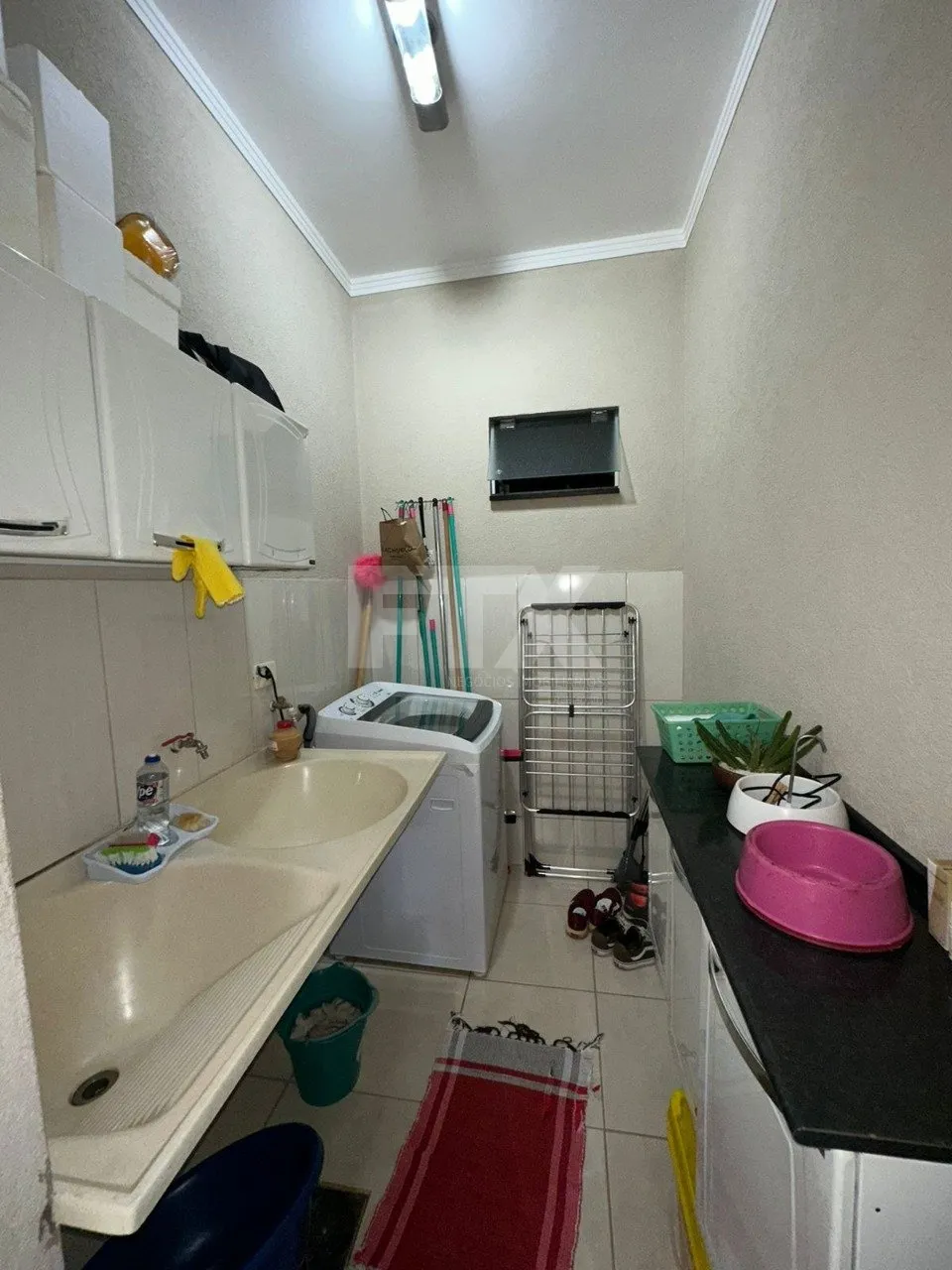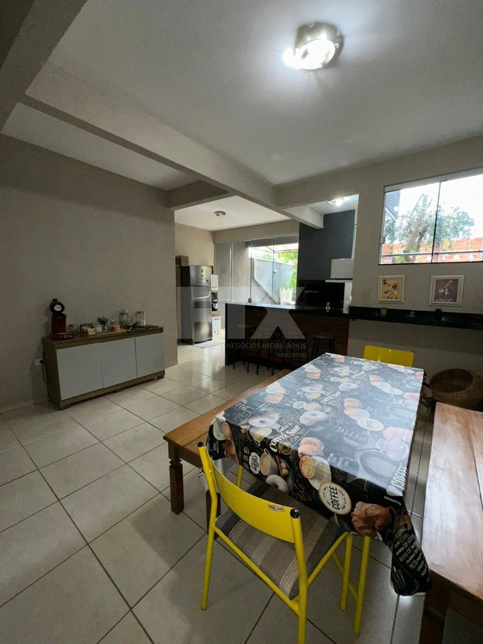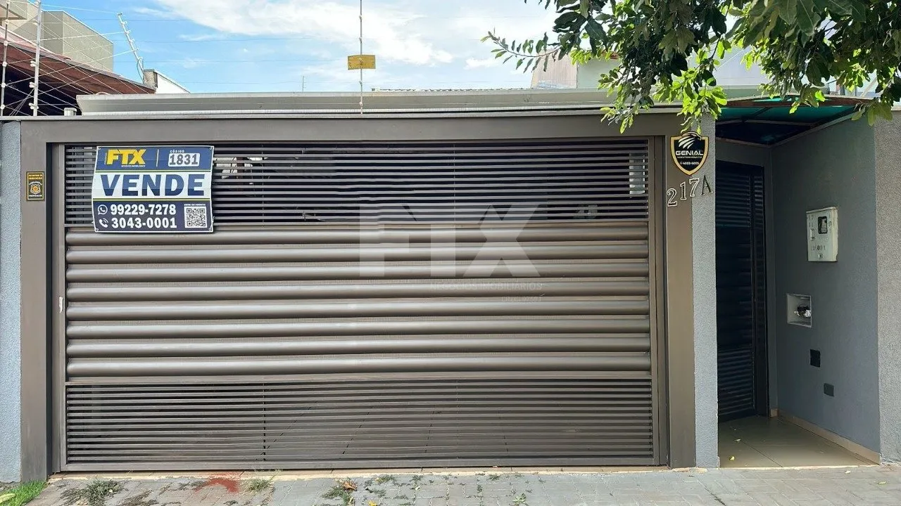 Sobrado com 2 suítes e 1 quarto no pavimento superior, sala de estar, cozinha, sala com banheiro social, espaço gourmet, lavanderia coberta, dispensa e garagem coberta, armário embutido na suíte.