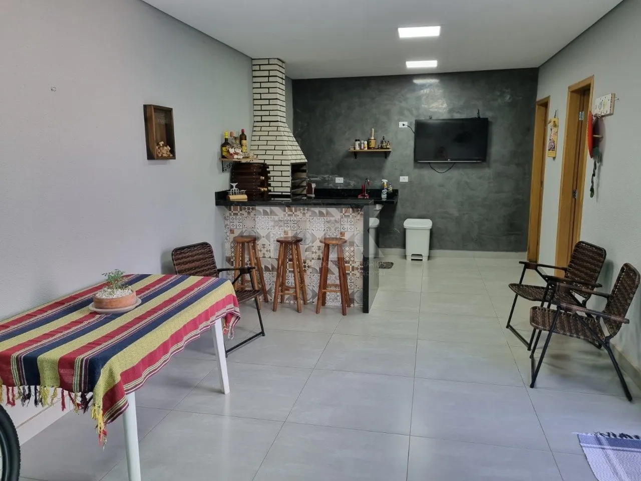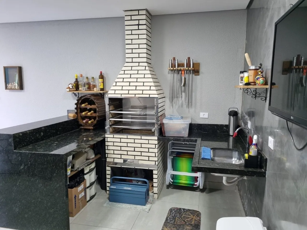 Espaço gourmet coberto: Com churrasqueira e lavabo, ideal para receber amigos e família.