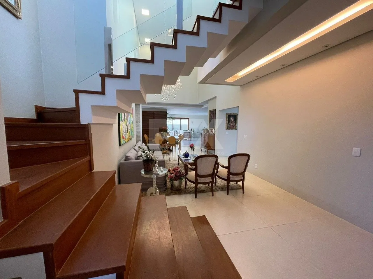 Sobrado com ótimos acabamento, uma suíte térrea com closet e jardim de inverno, sala de TV, escritório, cozinha integrada, gourmet integrado, piscina, mais duas suítes com closet e varanda na parte superior e uma varanda grande entre os quartos, que tem fundação e preparo para ser mais uma suíte com closet e varanda.