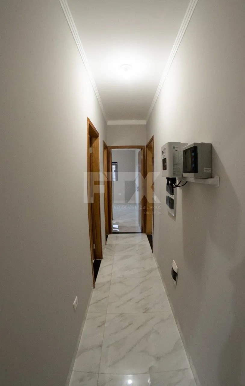 Área do terreno 157,82m2, área construída 93,00m2, sendo um apartamento mais dois quartos, sala, cozinha, área de serviço, banheiro social, os dois banheiros com lavatório em granito entalhado, nicho e box de blindex, abrigo coberto para um carro e uma vaga descoberta. Com pisos de porcelanato polido, cozinha azulejada até o teto. Aquecedor solar com boiler de 300 litros com água quente nos lavatórios, chuveiro e pia de cozinha. Caixa d’água fria de 1000 litros. Energia fotovoltaica com geração de 206kw e inversor com possibilidade de acréscimo de mais quatro placas com geração total de 483 kw. Portão de elevação motorizado, portão social coberto a parte interna , cerca elétrica, alarme, interfone, padrão trifásico. Pintura em grafiato com fachada e muro em cristal. Tomadas para AR nos três quartos e sala, com tubulação embutida para os gotejamentos.