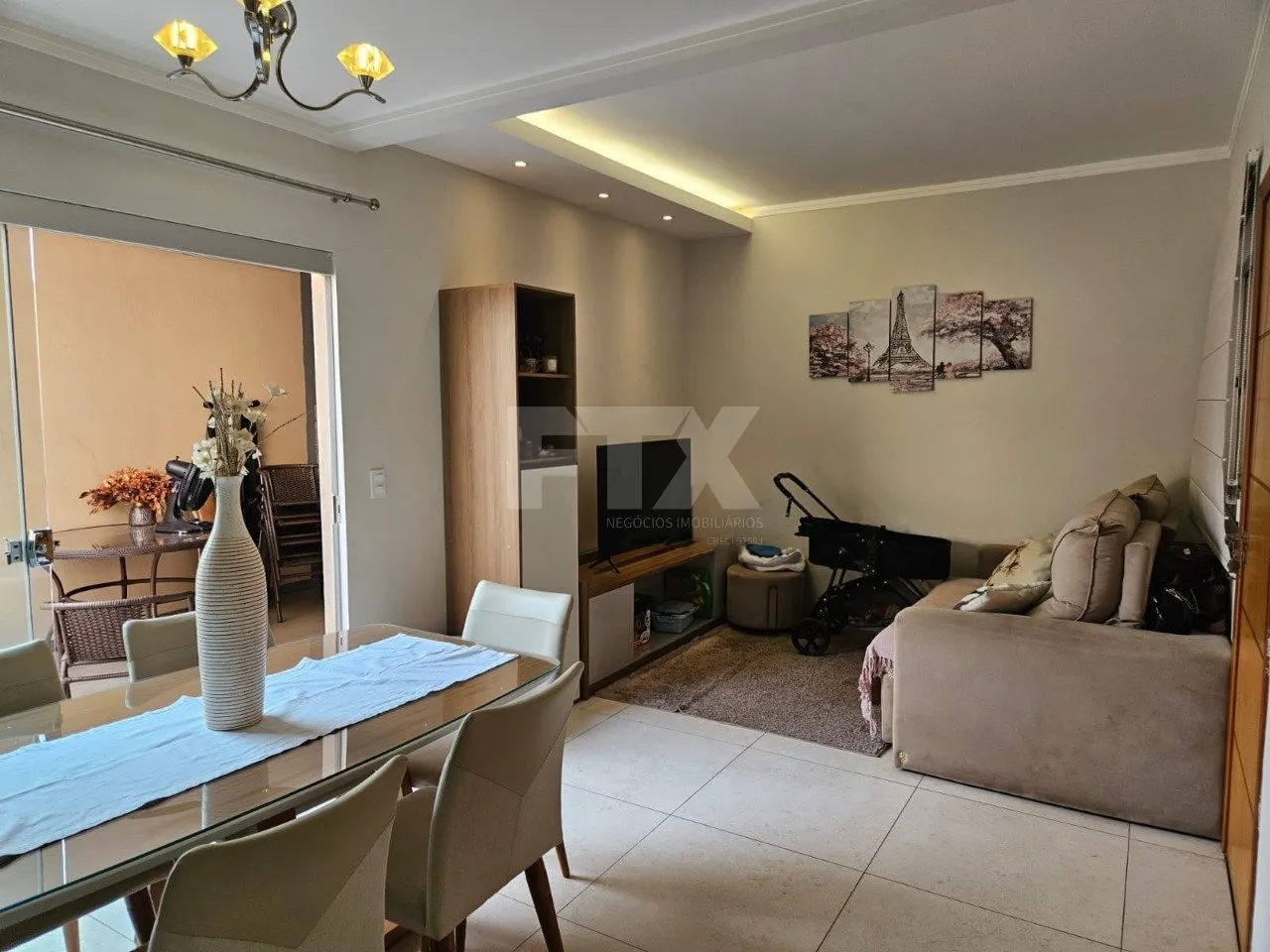 Sala de estar e jantar integradas, proporcionando amplitude e convivência