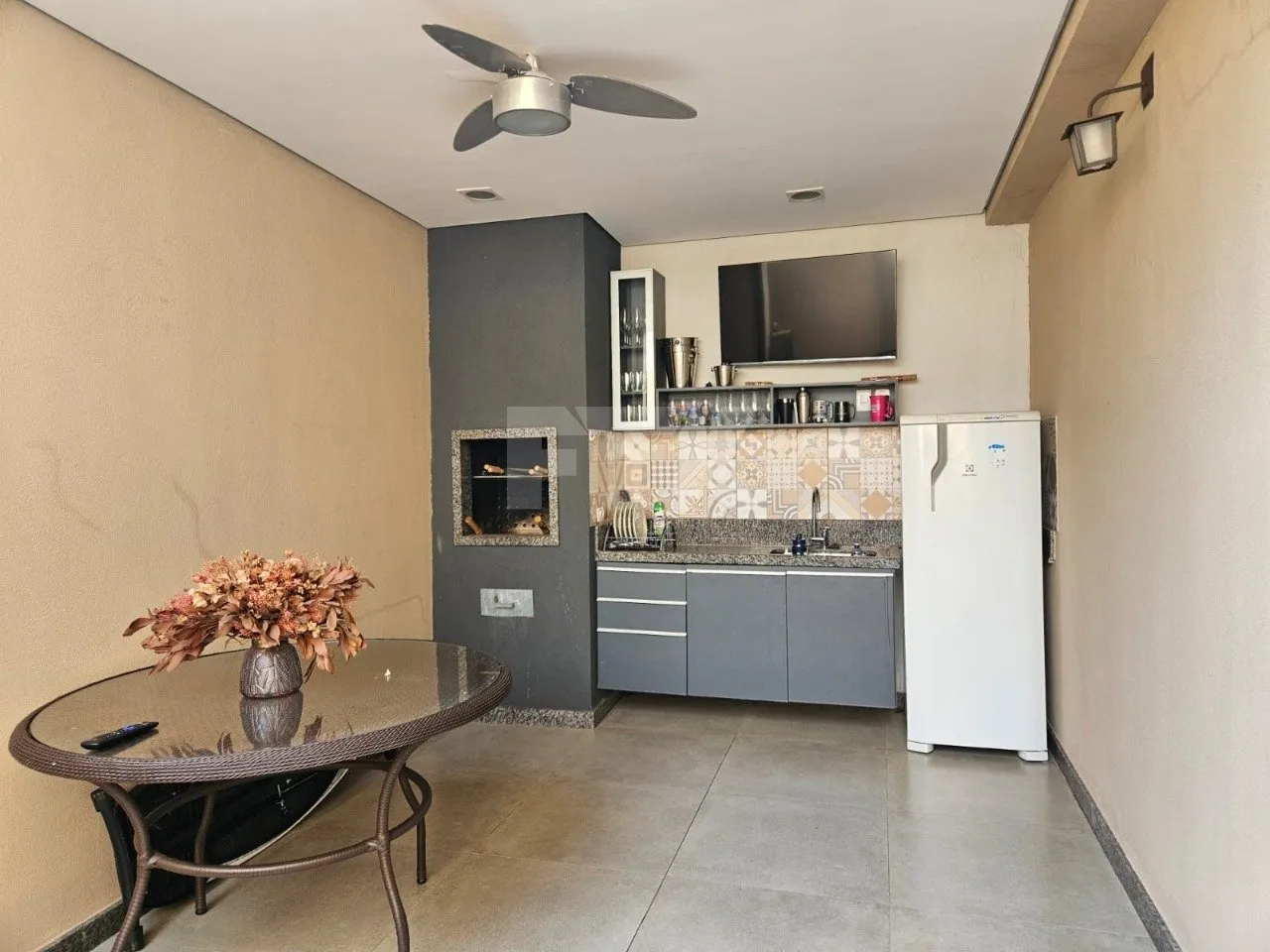 Área gourmet com churrasqueira e móveis planejados, ideal para momentos de lazer