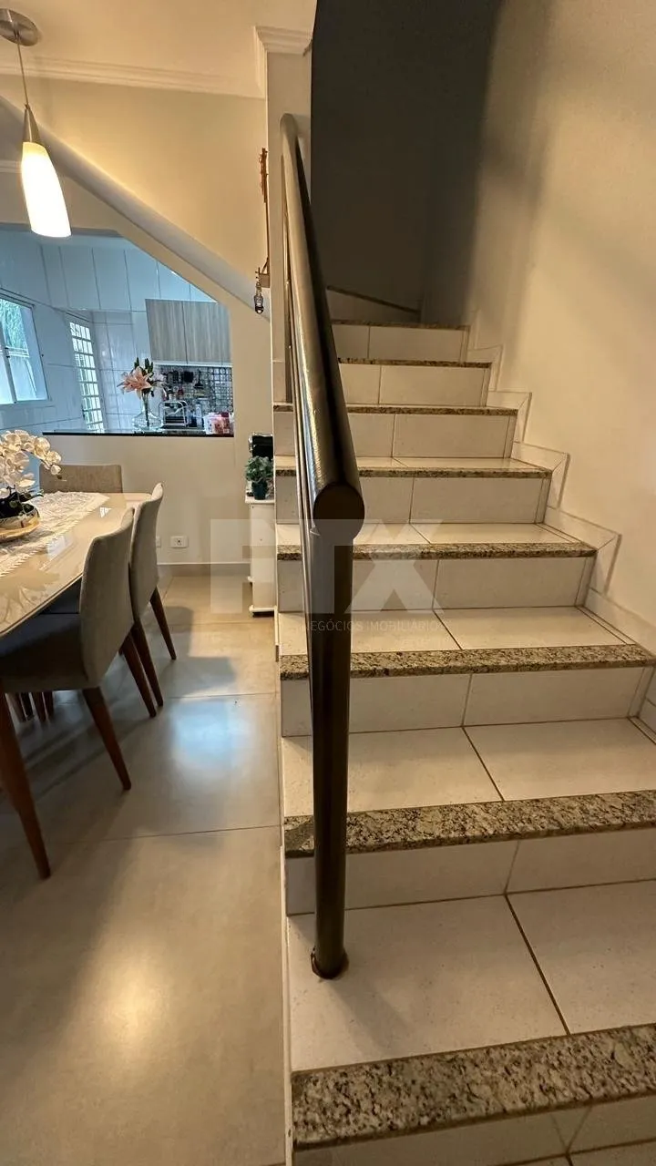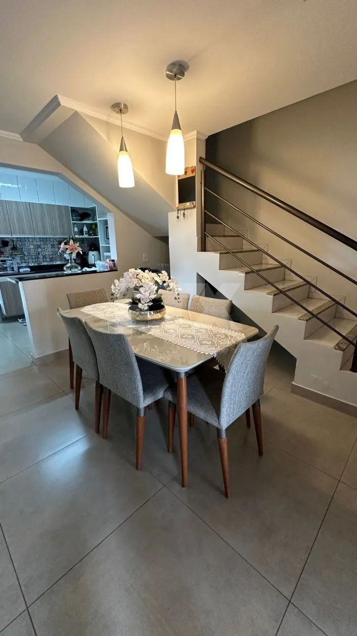 Sobrado no bairro Monte Castelo com 116,89 m2 de área construída, contendo na parte superior 01 suíte, 02 dormitórios com wc social. Na parte inferior, sala completa para dois ambientes, lavabo, espaço para escritório, cozinha com a/e, lavanderia e na parte externa uma agradável espaço gourmet e jardim.