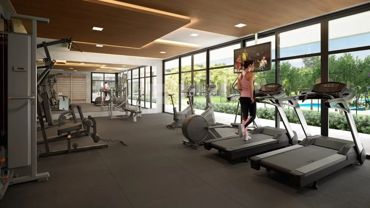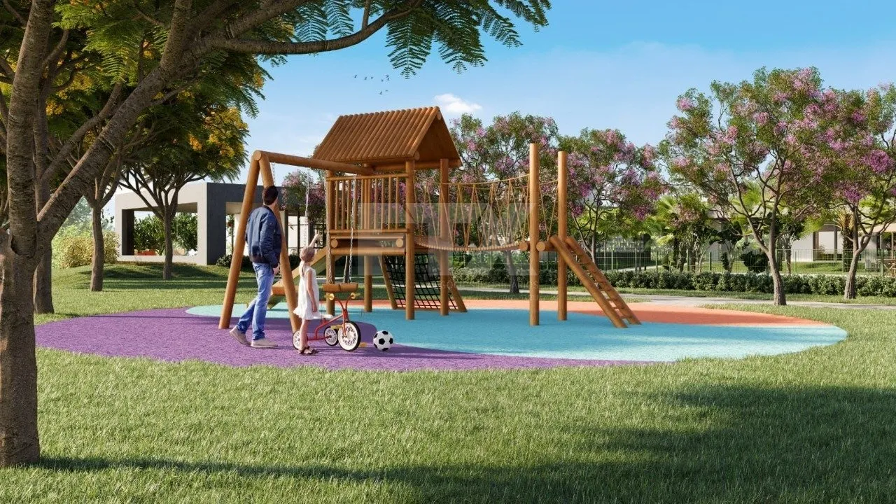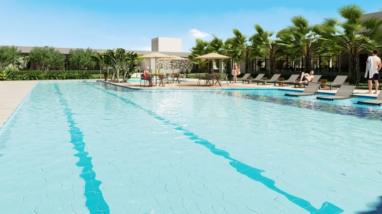 Condomínio com área de lazer completa, incluindo piscina, salão de festas, academia, quadras esportivas e playground.