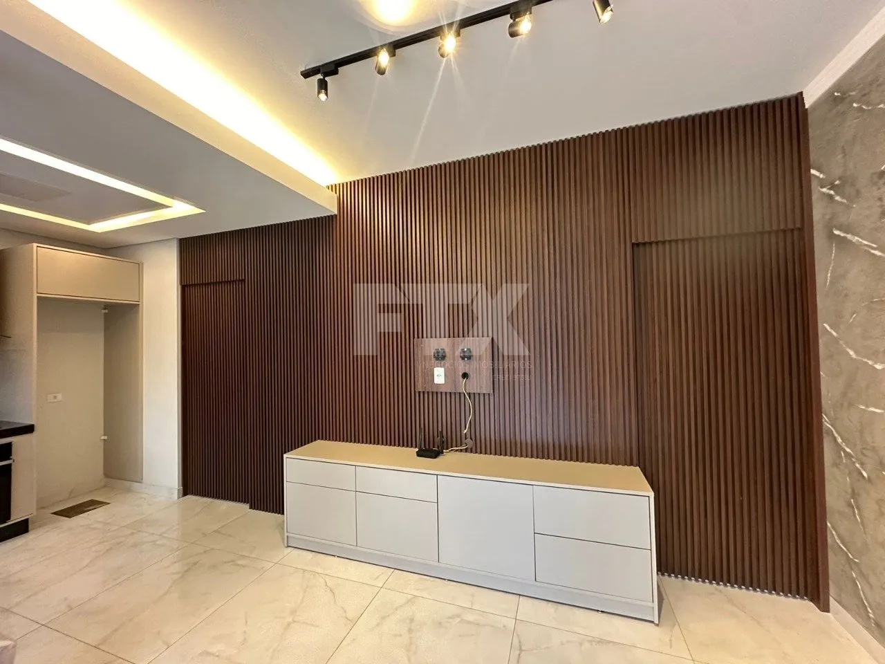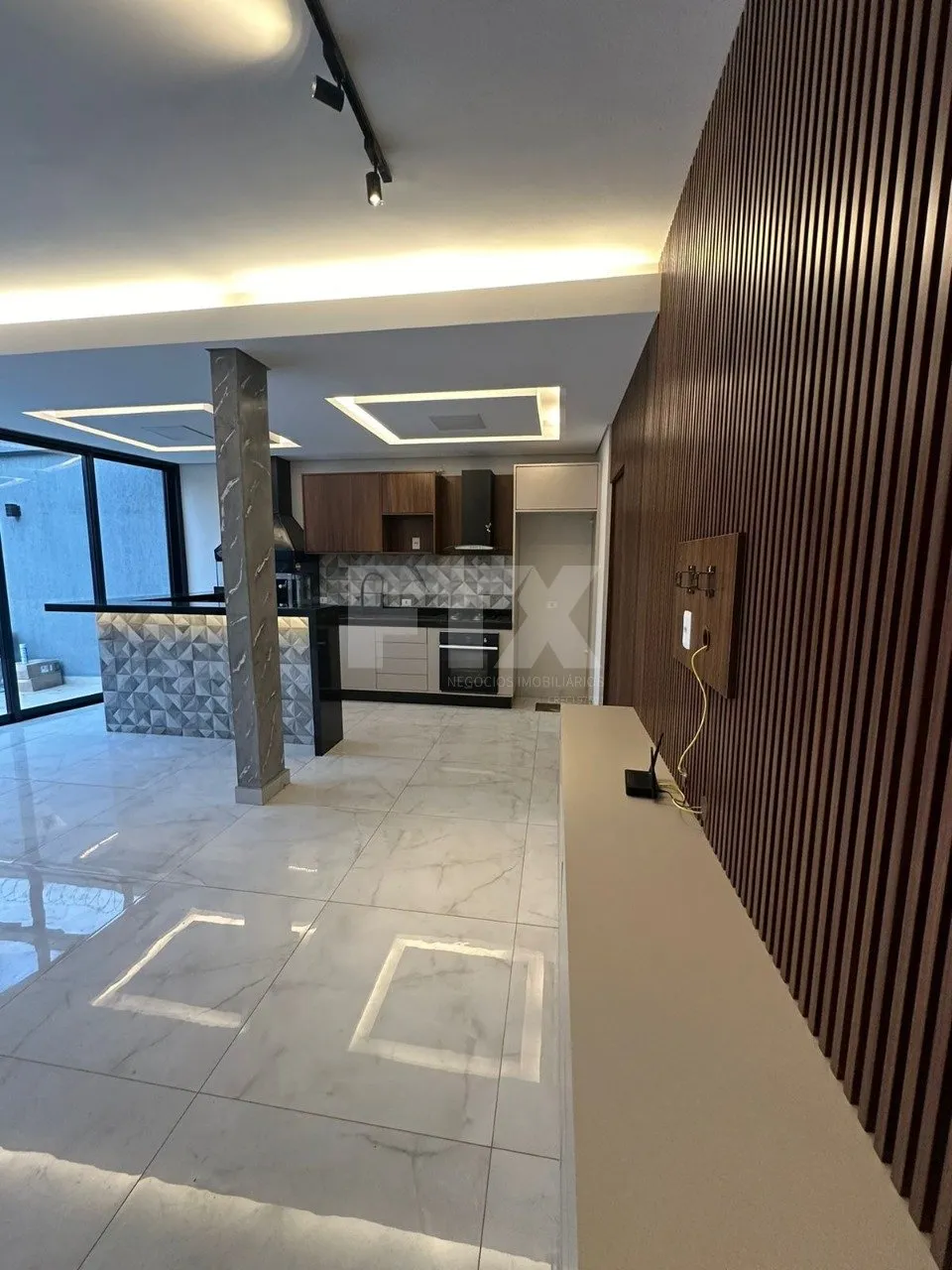 Sala integrada com a cozinha, criando um espaço amplo e funcional.