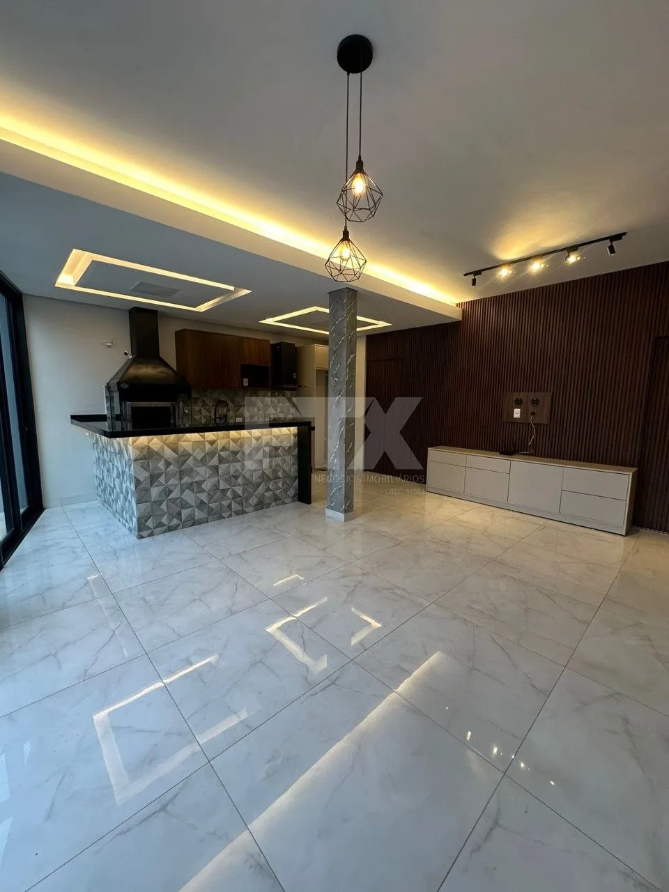 Essa casa foi projetada com uma arquitetura contemporânea, oferecendo ambientes integrados e um toque de sofisticação com móveis planejados.