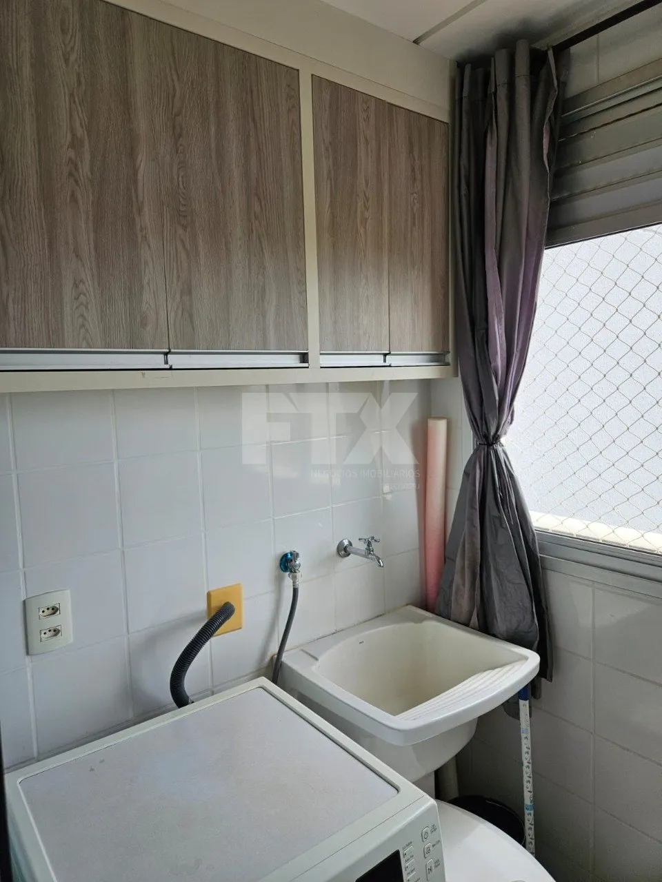 Lavanderia com máquina lava e seca.