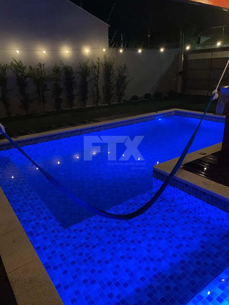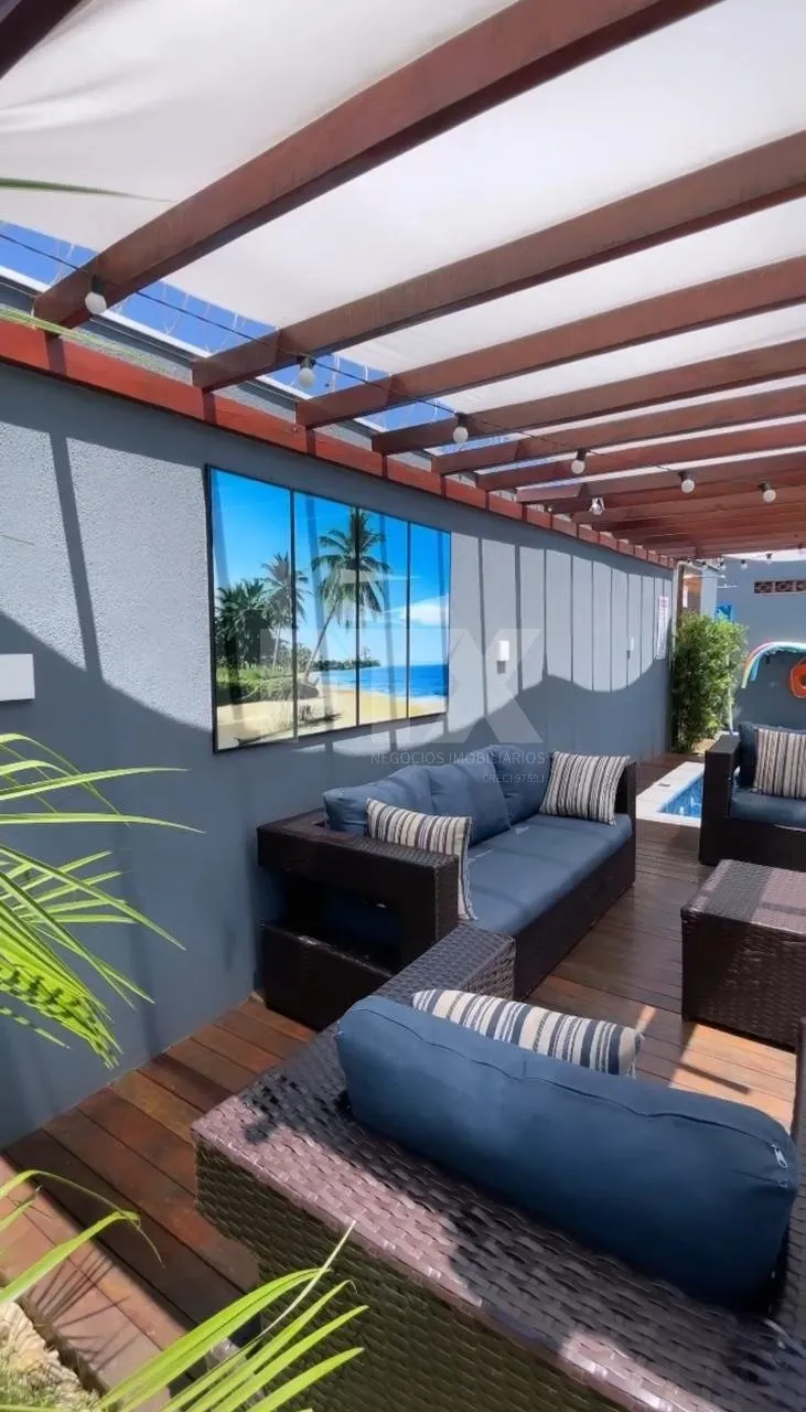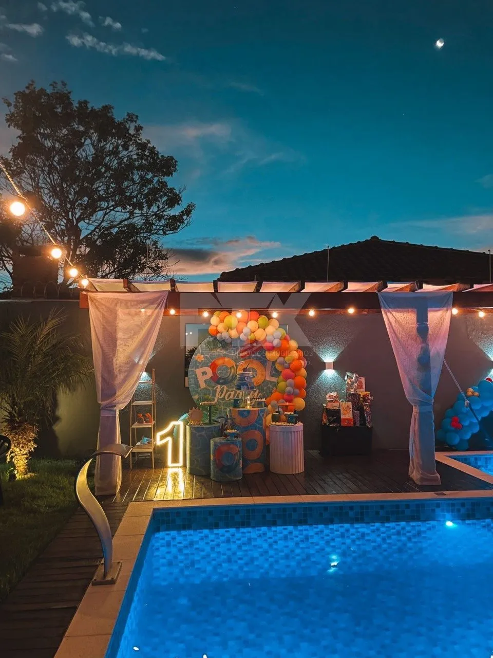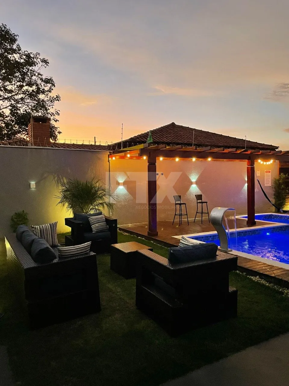 – Deck com pergolado e iluminação em LED