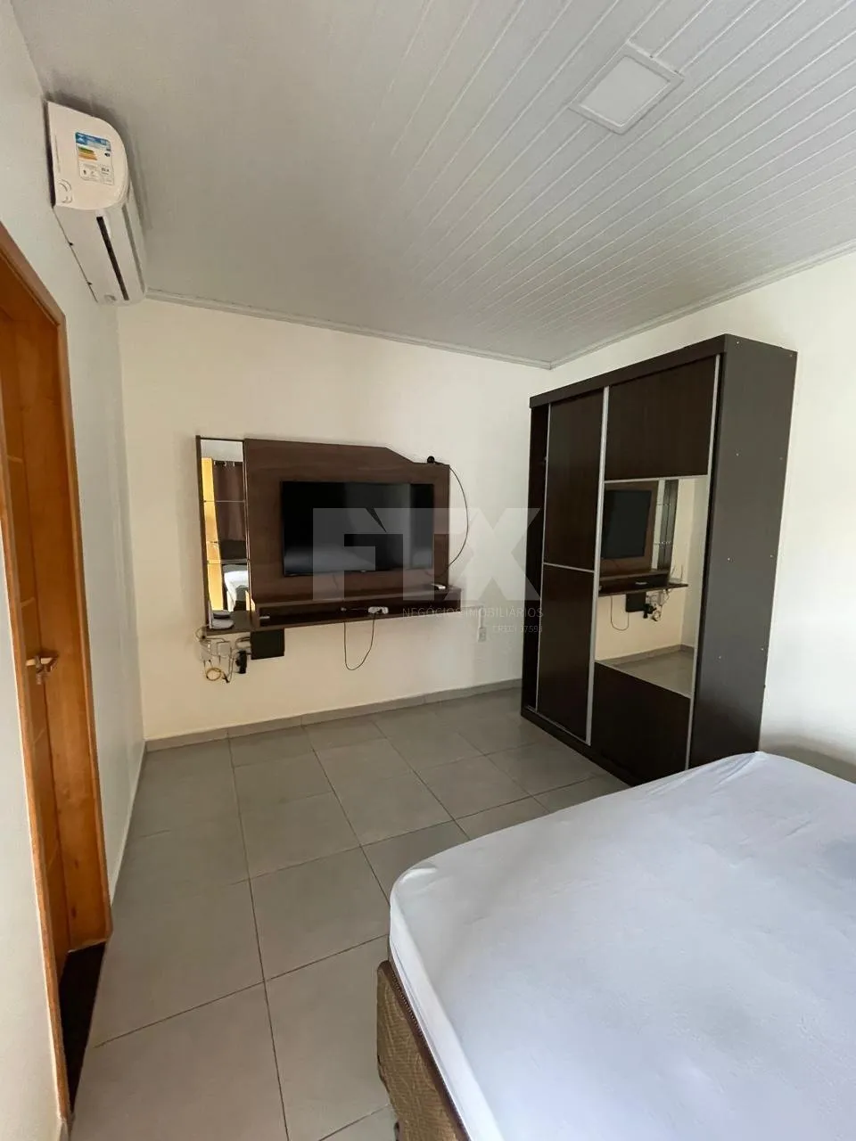 – 1 suíte com ar-condicionado, cama queen e guarda-roupa