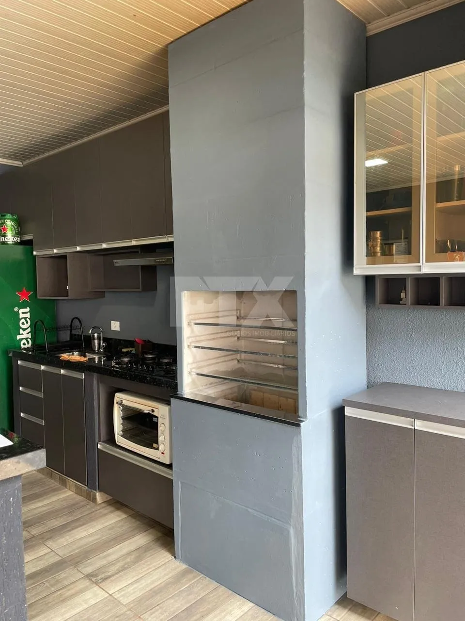 – Cozinha completa com cooktop, forno, depurador, armários planejados, cristaleira, geladeira, freezer e churrasqueira integrada