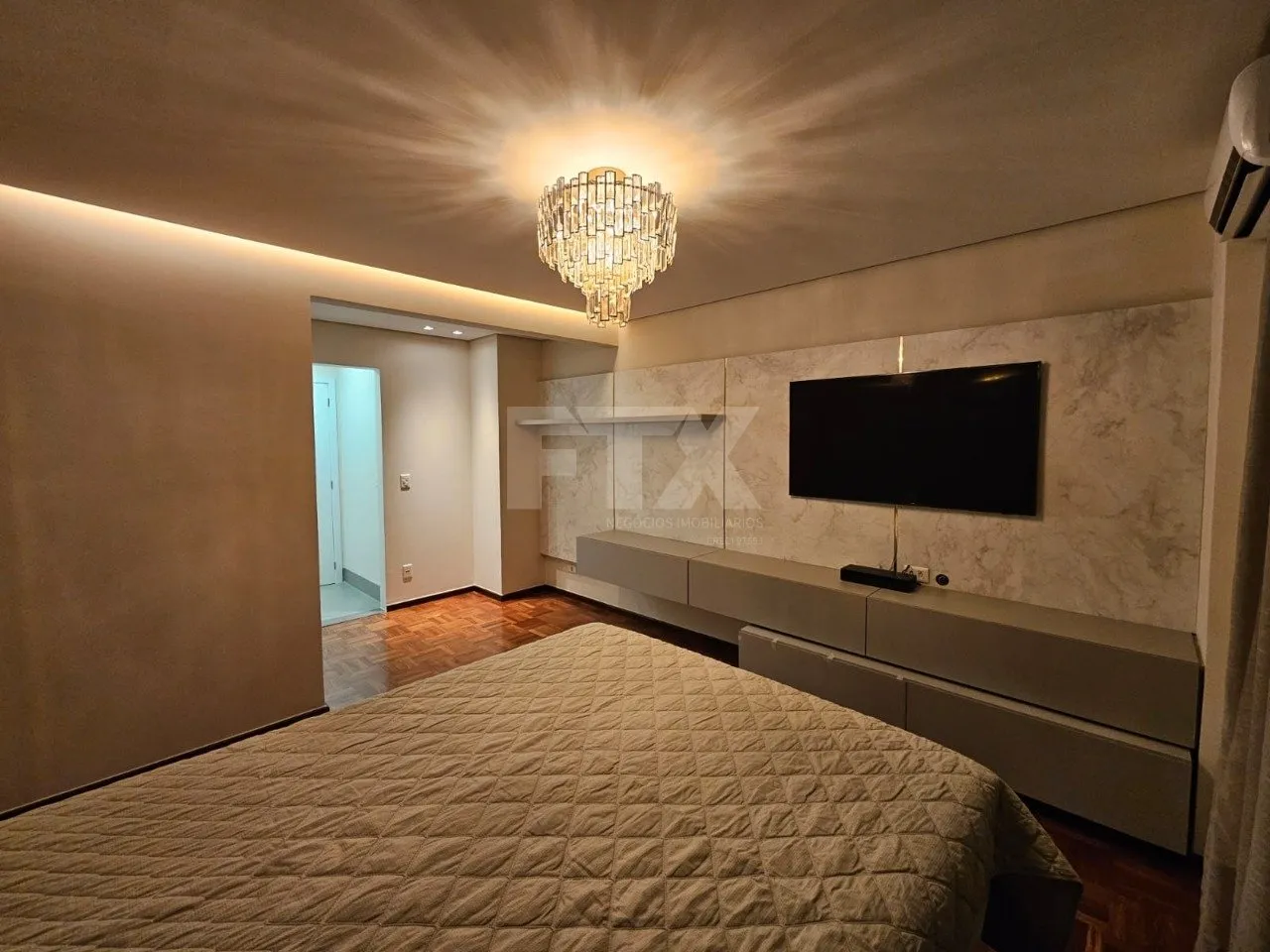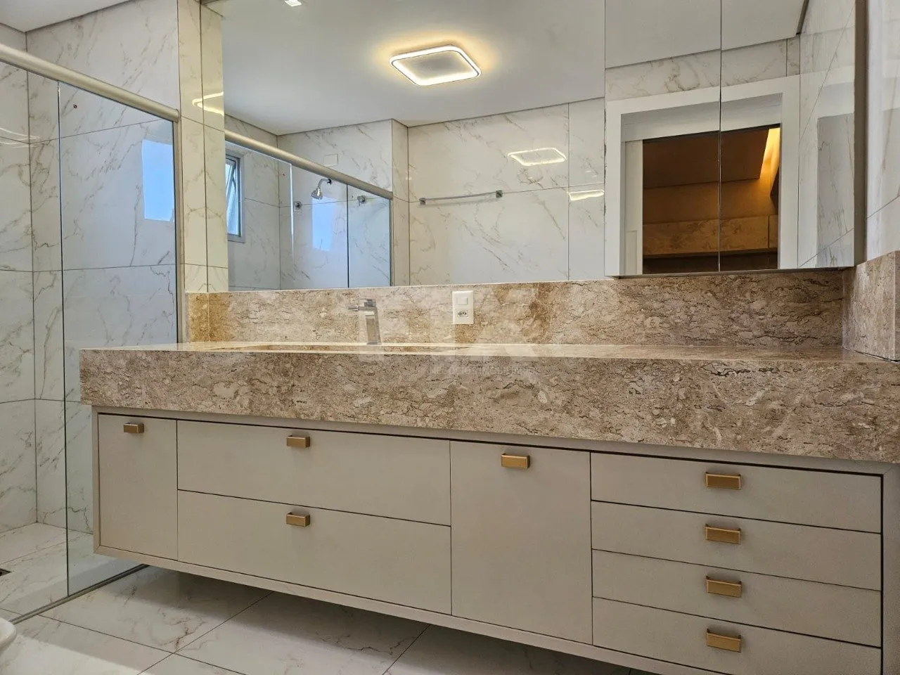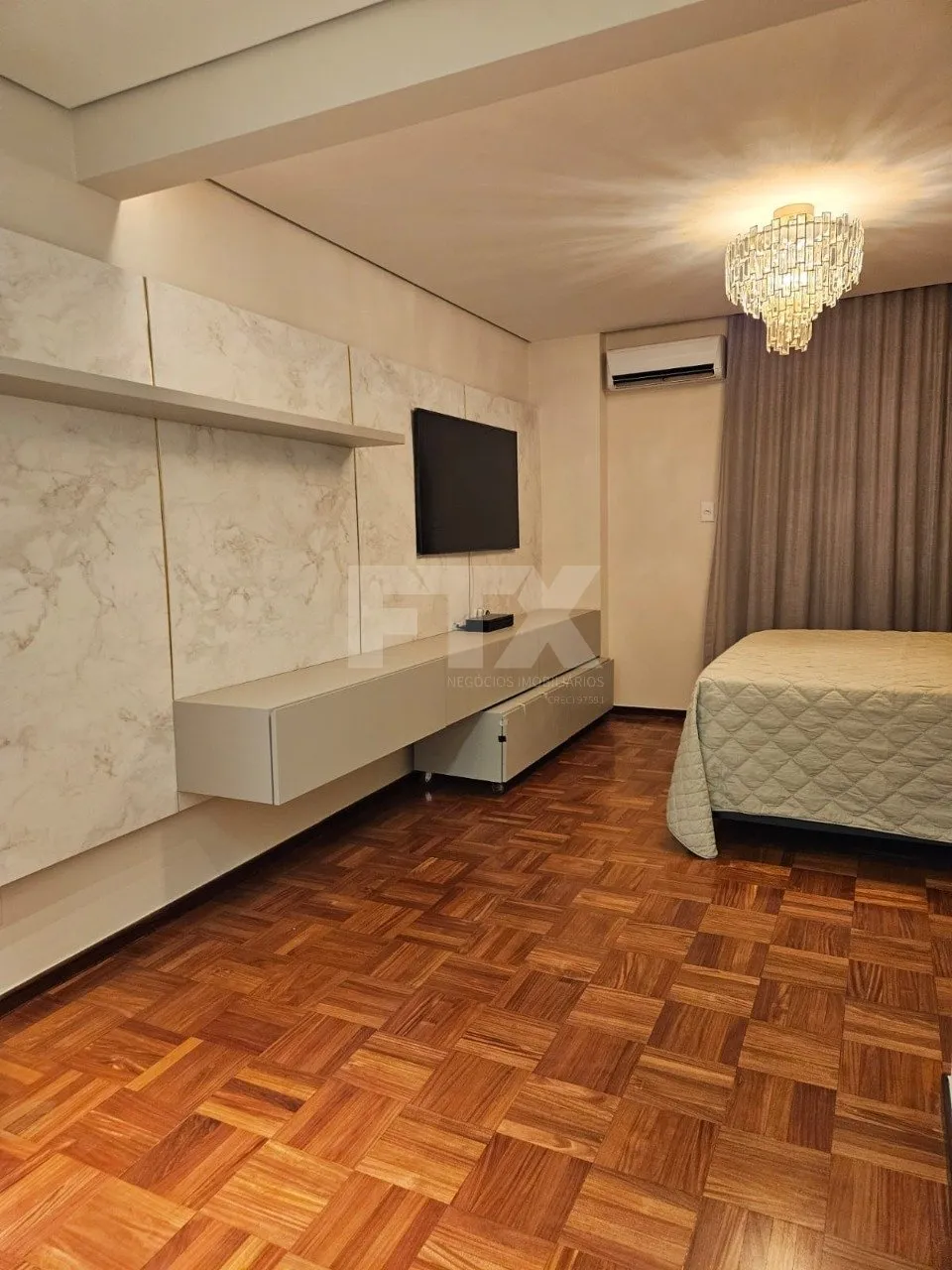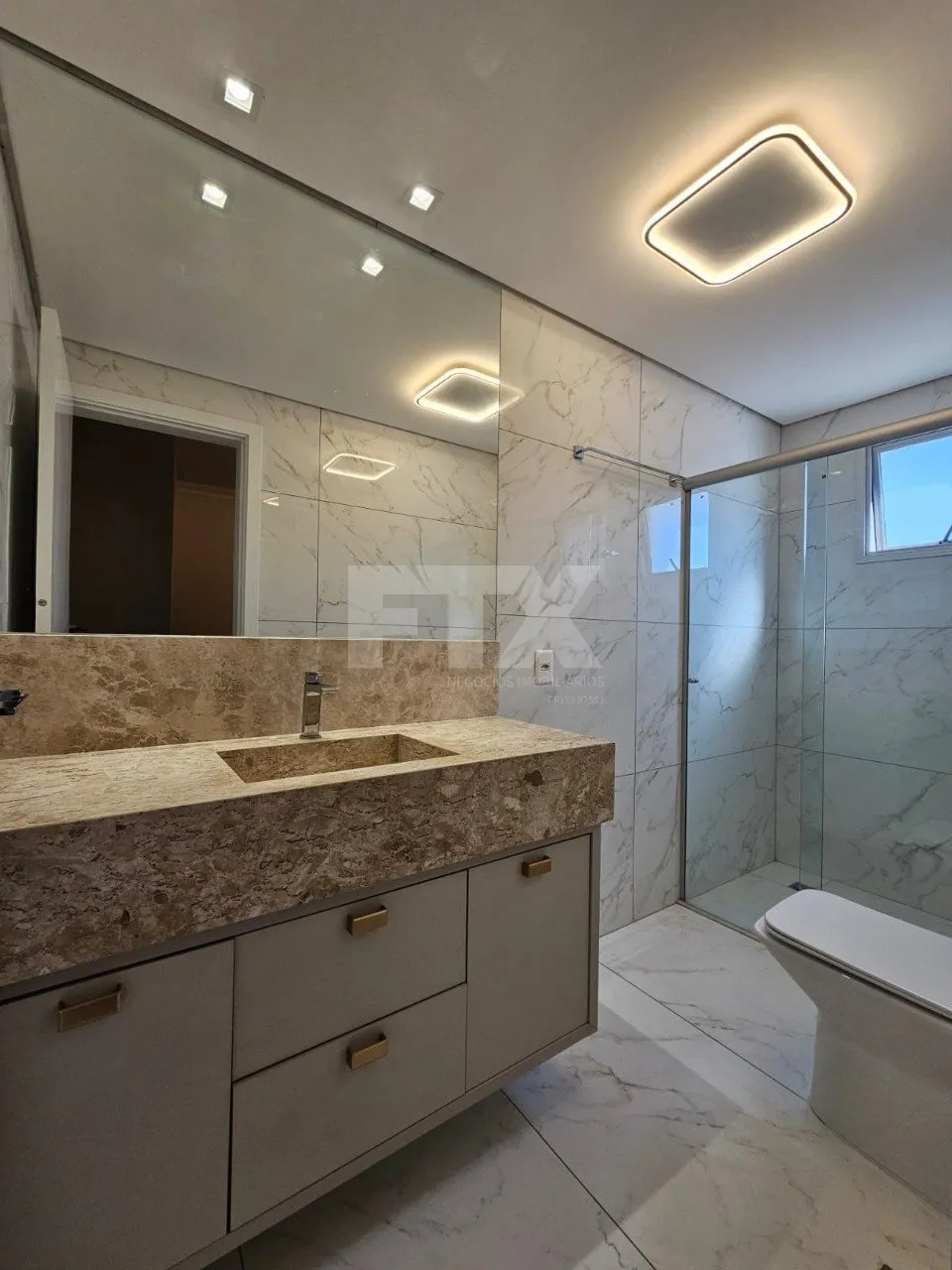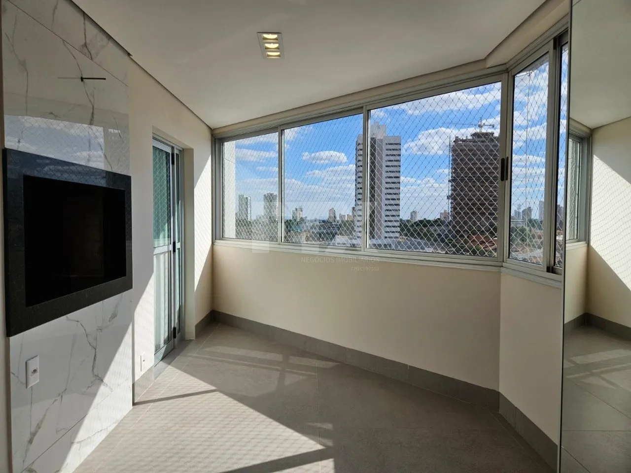 Apartamento rico em armários. Sala para dois ambientes, sacada fechada, lavabo, três suítes sendo uma com closet, cozinha planejada integrada com a churrasqueira, ampla lavanderia com um quarto e um banheiro. Três vagas de garagem paralelas. Prédio com lazer completo: piscina, salão de festas, quadra poliesportiva, salão de jogos, guarita 24 horas, sauna e playground. Apartamento poente.