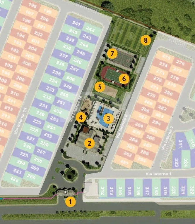 Condomínio fechado com portaria 24h, controle de acesso e completa área de lazer, incluindo: