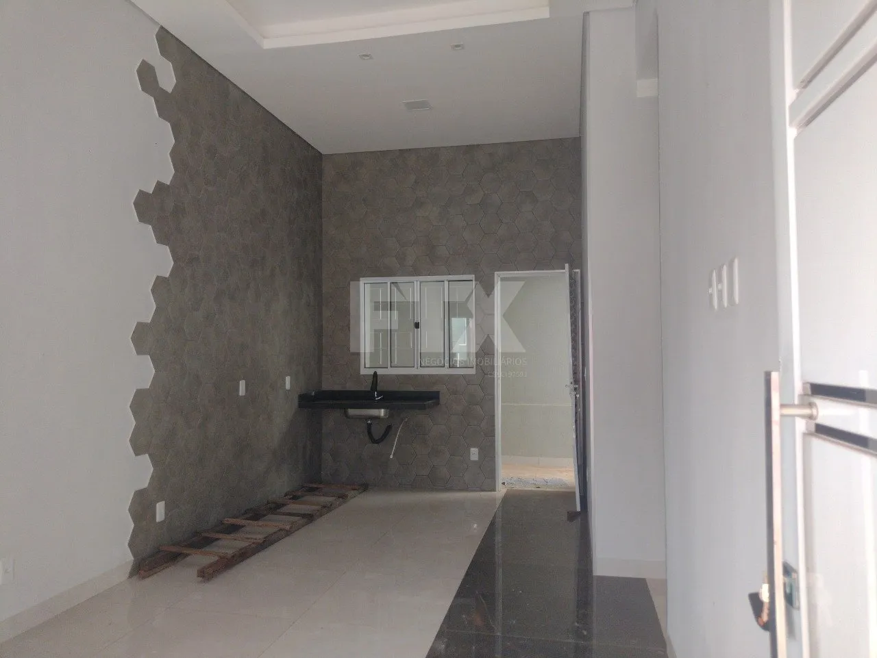 casa com 1 suite , 1 quarto, wc social, cozinha integrada com a sala, área de serviço, amplo quintal , garagem coberta para 2 carros