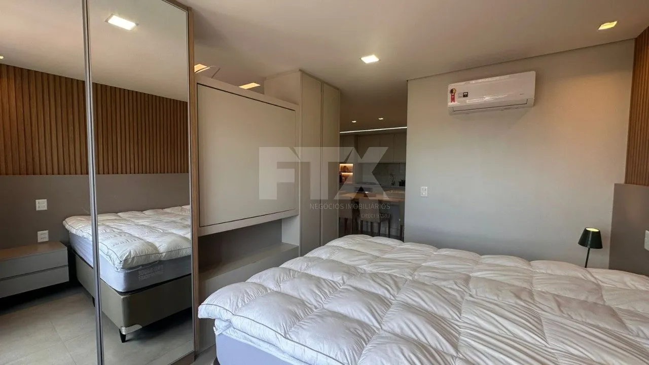 Lindo Flat todo mobiliado, completo para a sua morada, possuído a Sala de estar com cozinha conjugada, Área de serviço, Banheiro e Quarto.
