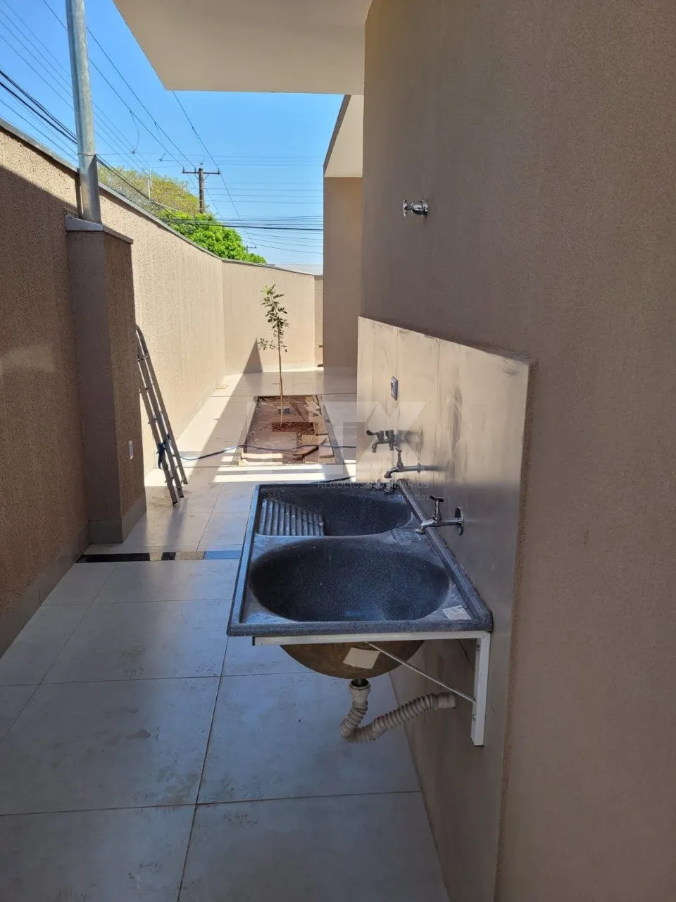 O pequeno quintal complementa o imóvel, oferecendo um espaço extra para descanso, lazer ou para pets.