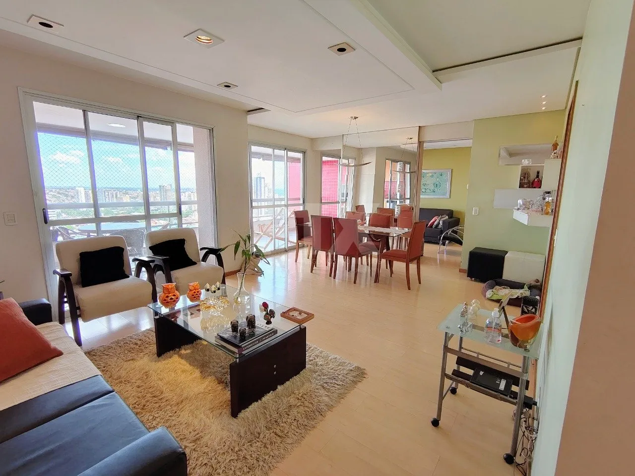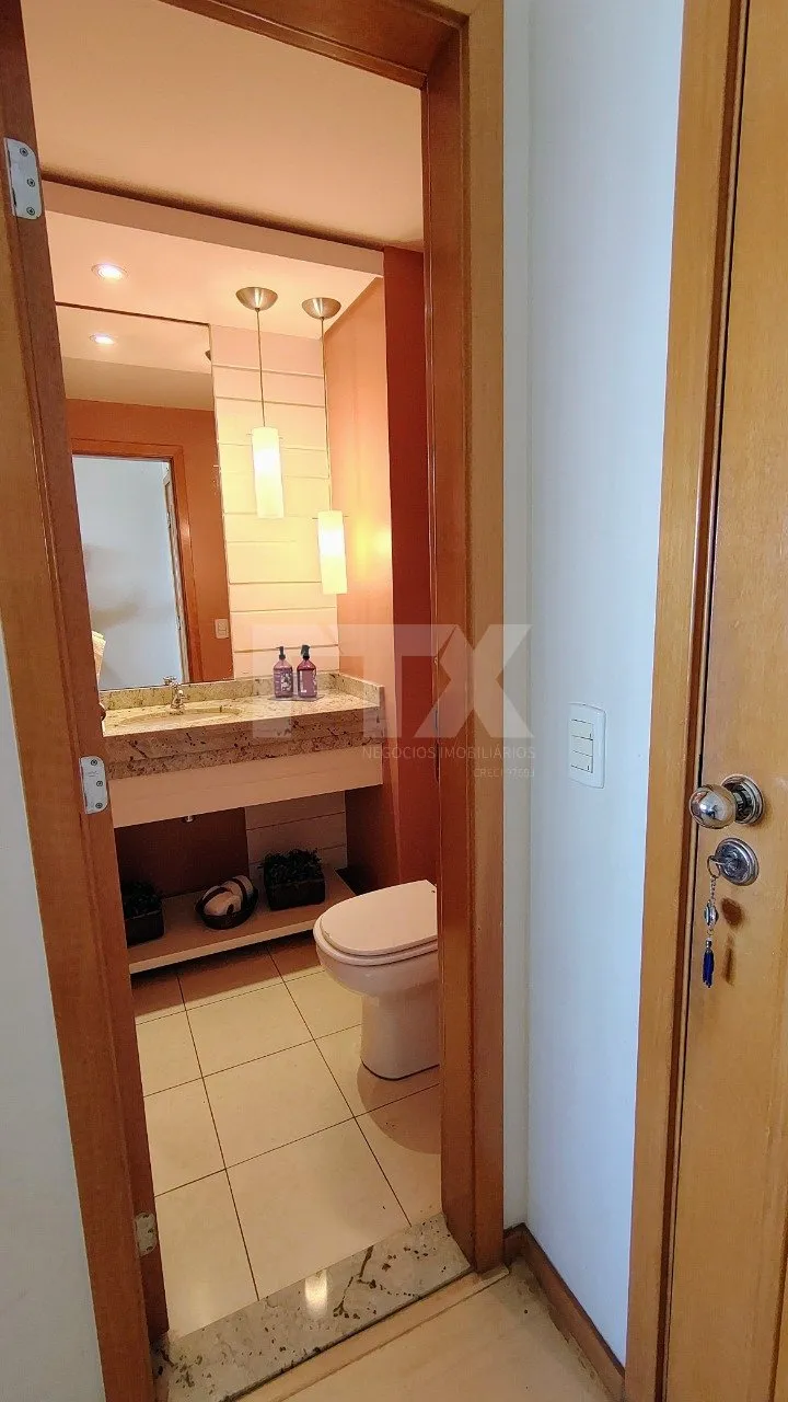Apartamento com vista maravilhosa, andar alto vista Sul ,sacada com churrasqueira , 3 salas ,copa/ cozinha planejada, area de serviço, despensa, wc de serviço , lavabo, uma suíte com closet e sacada, dois quartos com móveis planejados sendo demi-suíte, duas vagas na garagem.