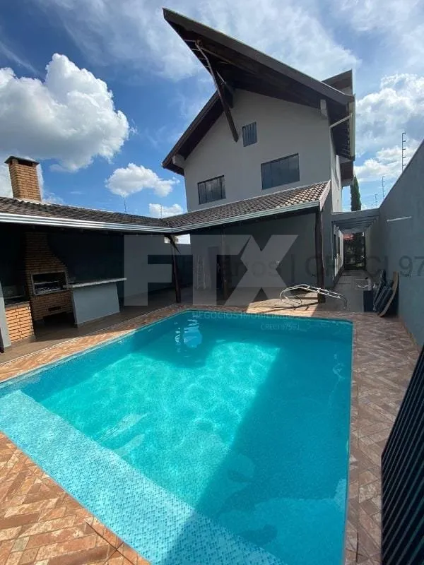 Sobrado lindo com 5 quartos, área gourmet completa com churrasqueira e piscina! Em cima: 1 suíte com móveis planejados, banheiro com box, sala de tv ou pode ser outro quarto, 2 quartos e 1 banheiro. Embaixo: sala com forro de gesso sanca, 1 quarto, lavabo, cozinha com armários e sala de jantar. Fundos: Área de Gourmet completa, com churrasqueira, bancada, piscina, área coberta, lavanderia e banheiro. Obs: Sobrado moderno, bem localizada no Jardim Jacarandá e com acabamentos de primeira! Pedras negras, piso porcelanato branco, louças da marca DECA, janelas de blindex, banheiros todos com box, etc. Proprietário analisa permuta e analisa proposta!