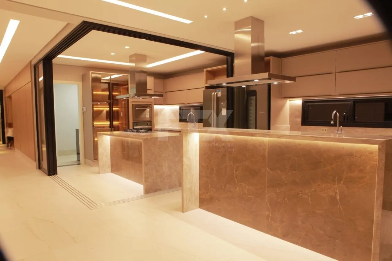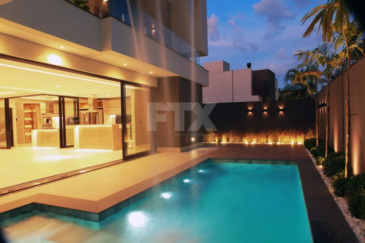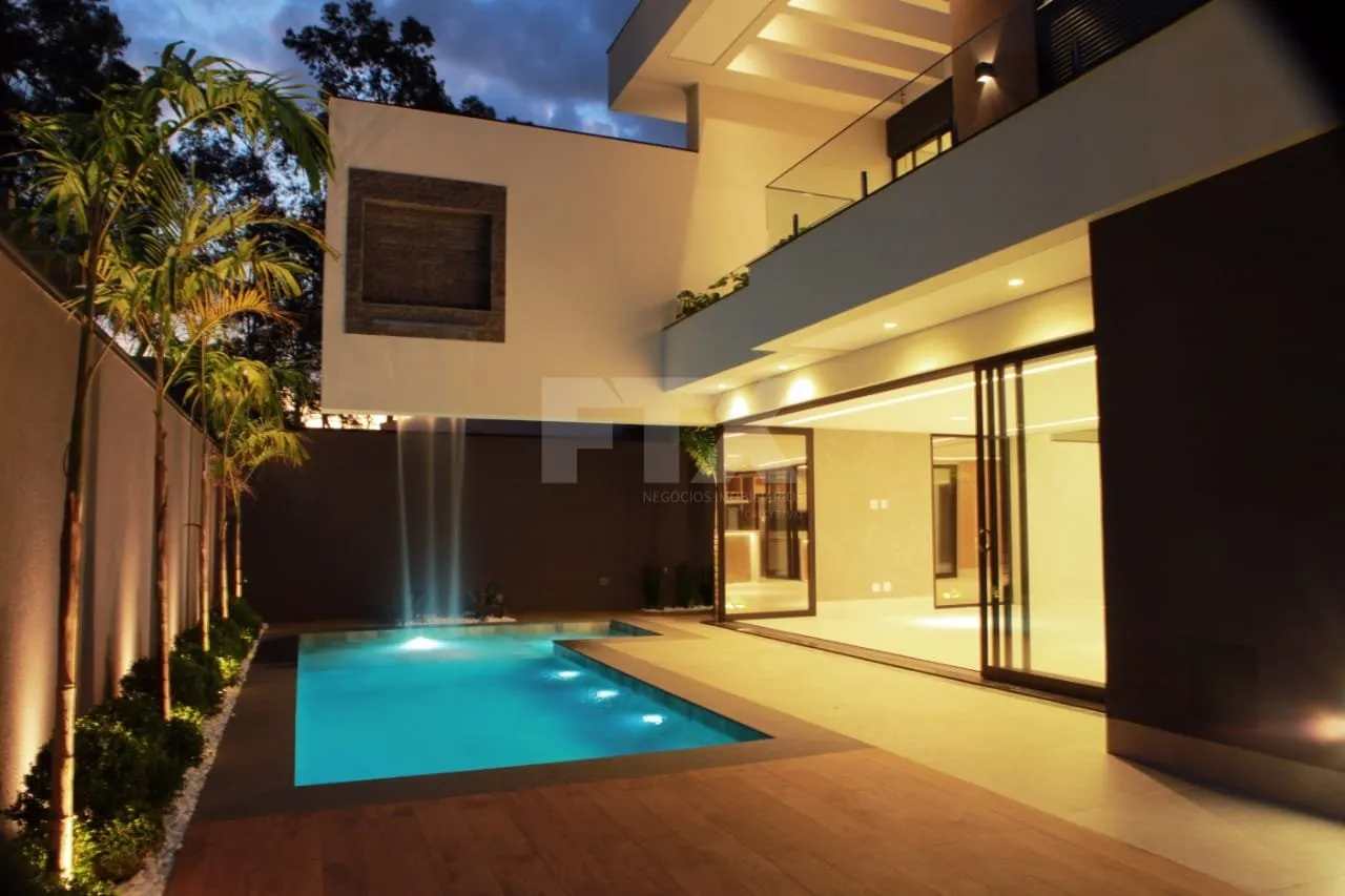 Piso superior: 01 suíte master, 01 suíte com sacada, 02 apartamento, 01 mezanino com acesso à sacada. Piso térreo: 01 apartamento, 01 escritório, 01 lavabo, 01 banheiro social/lazer, cozinha e gourmet que podem ser integradas, com planejados de altíssimo padrão e totalmente equipados com eletrodomésticos de ponta, sala com pé direito alto para 3 ambientes, piscina aquecida com hidro e cascata, água aquecida em todos os banheiros, cozinha e gourmet. Boiler 600L, energia solar instalada gerando até 1.300kw/mês, garagem para até 5 carros, dois corredores laterais de acesso social/serviço, paisagismo completo, projeto luminotécnico que valoriza ainda mais os traços aqui.